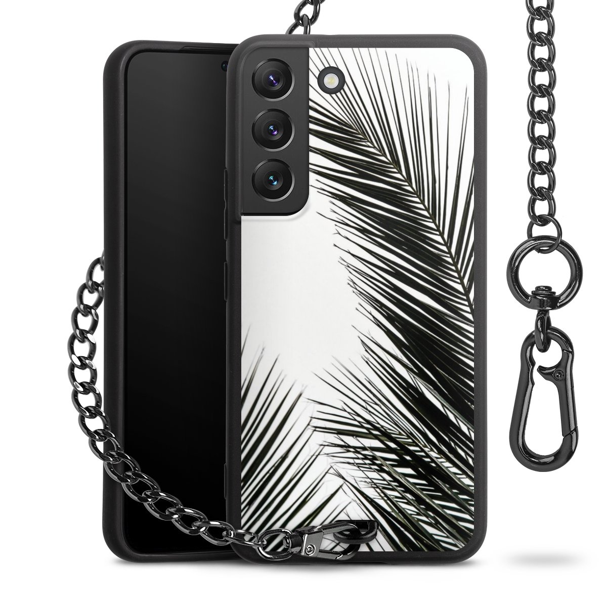 • Mattschwarze Handyhülle mit Metallkette