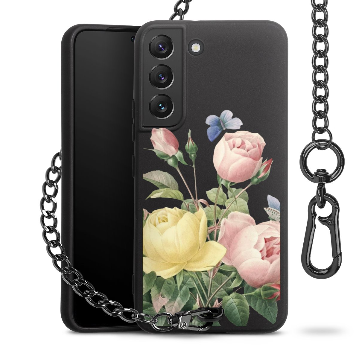 - Mattschwarze Handyhülle mit Metallkette