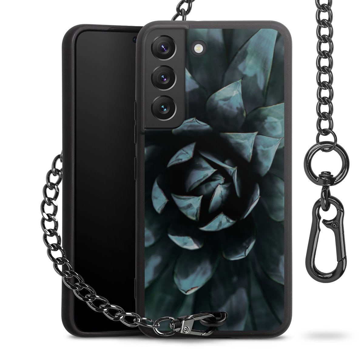 • Mattschwarze Handyhülle mit Metallkette