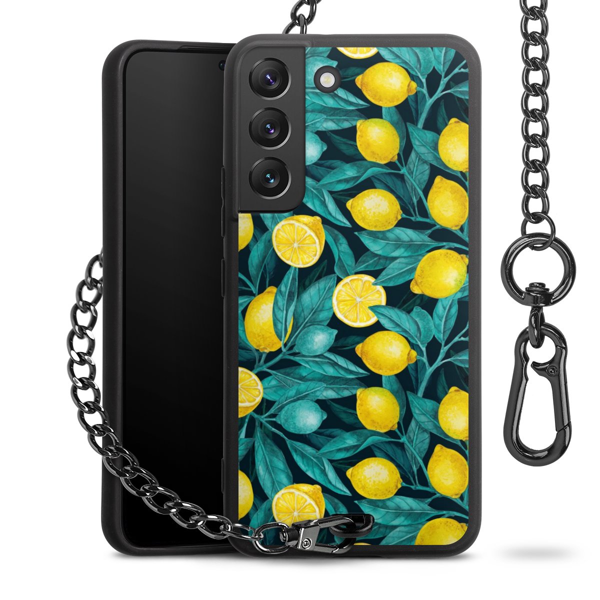 • Mattschwarze Handyhülle mit Metallkette