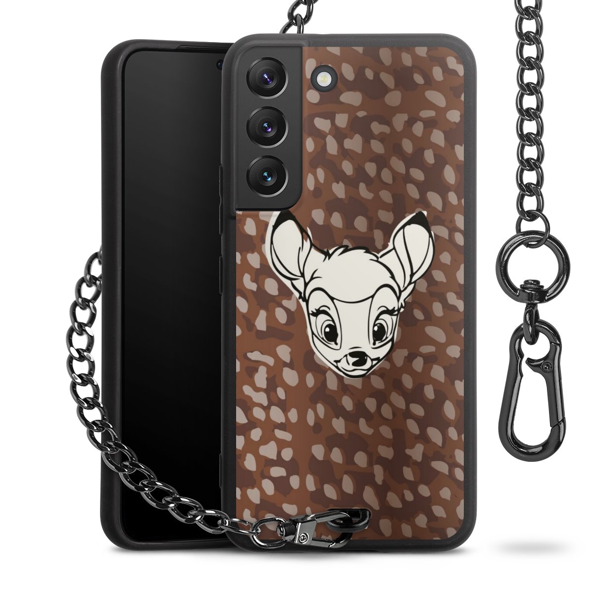 • Mattschwarze Handyhülle mit Metallkette