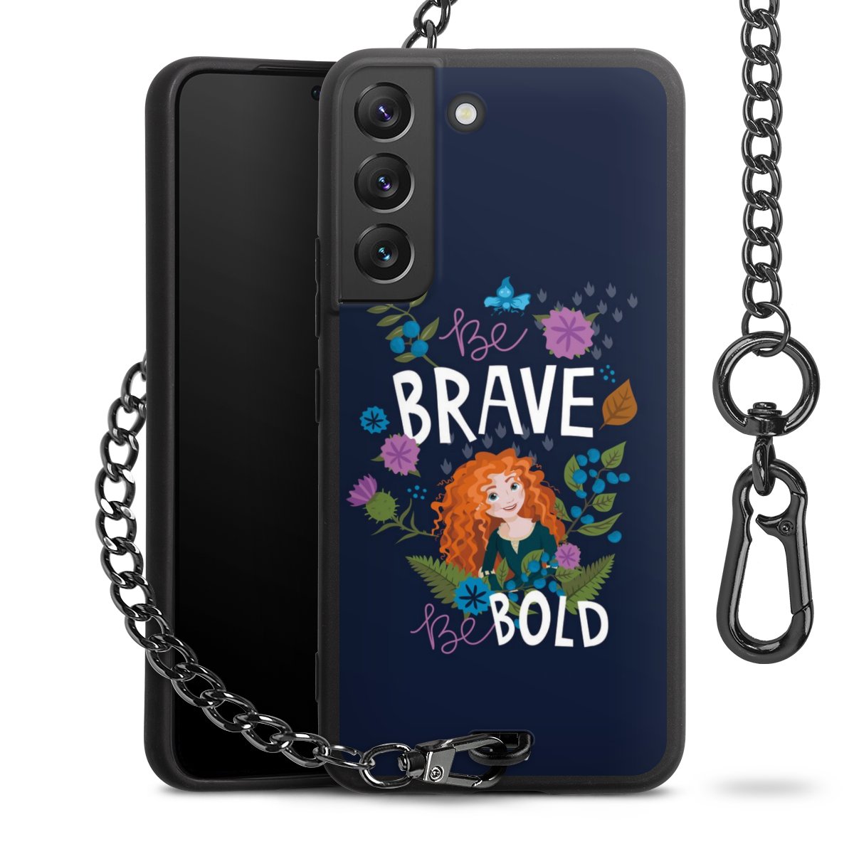 - Mattschwarze Handyhülle mit Metallkette