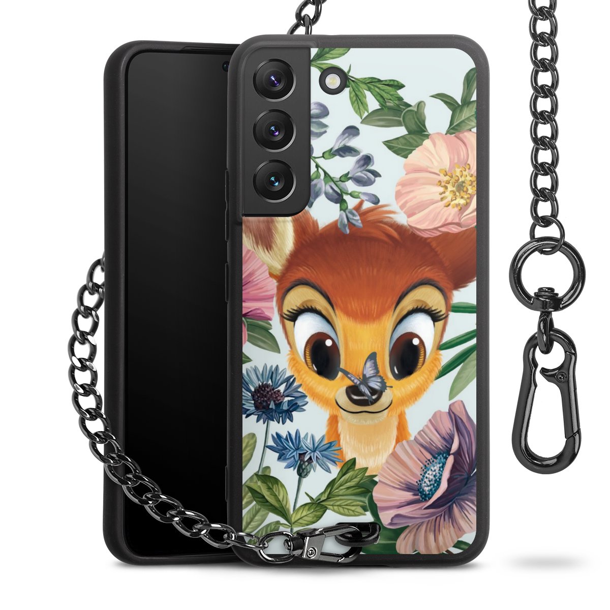 • Mattschwarze Handyhülle mit Metallkette