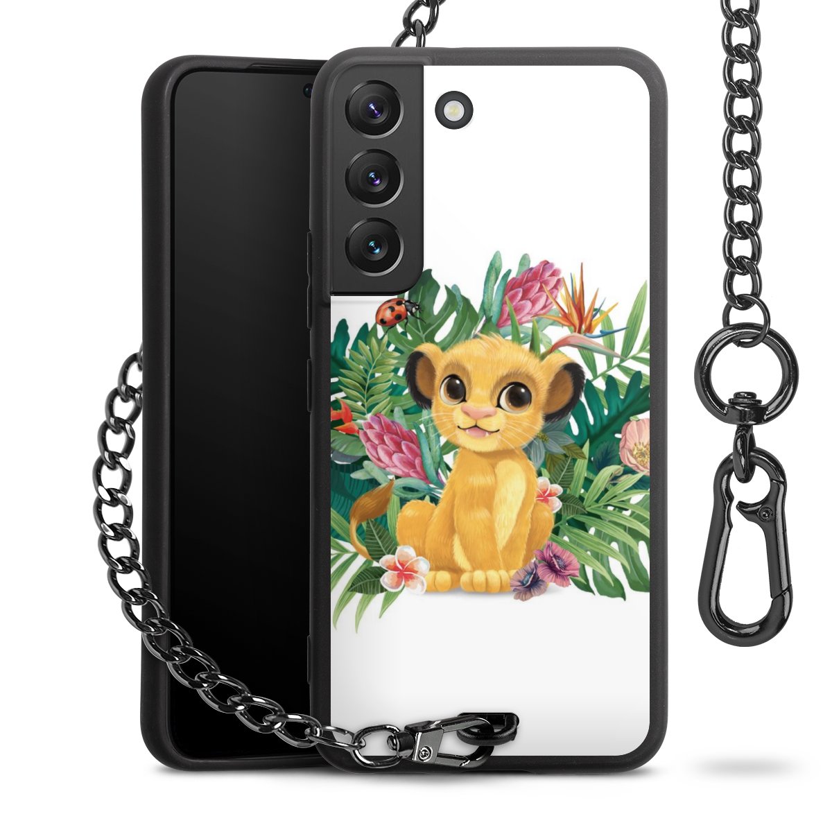 Die Handyhülle verfügt über eine mittig am unteren Rand platzierte Öse, an der die Metallkette stabil befestigt ist. Bestelle die Hülle einfach für Dein Smartphone-Modell, dann passt sie wie angegossen und Du brauchst sie bloß einmal anzudrücken. Handy in die Tasche, Karabiner an den Hosenbund – schon kann die Party starten.