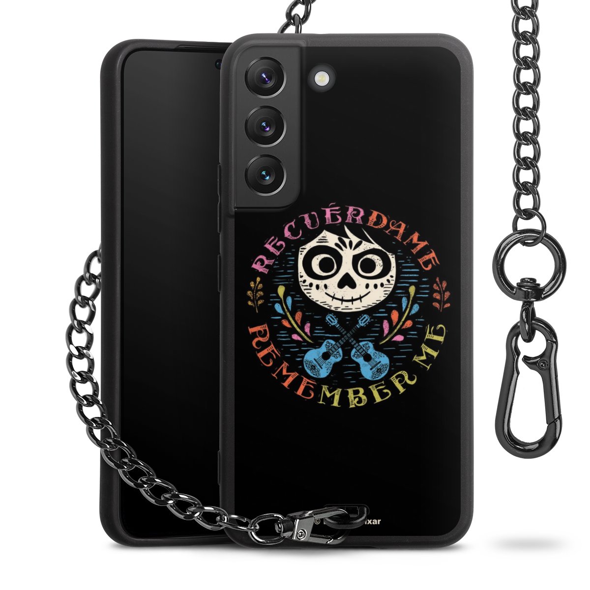 - Mattschwarze Handyhülle mit Metallkette