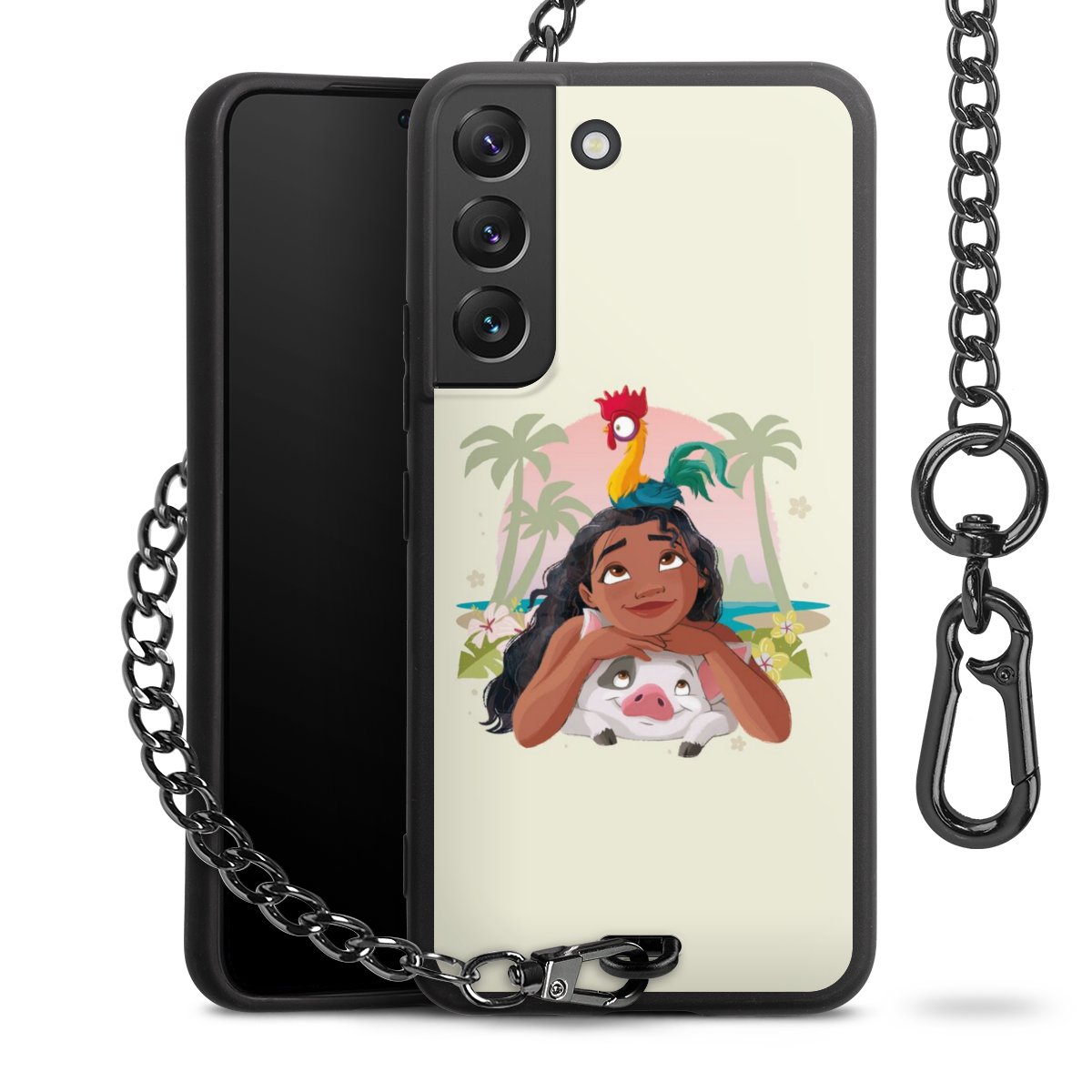 - Mattschwarze Handyhülle mit Metallkette