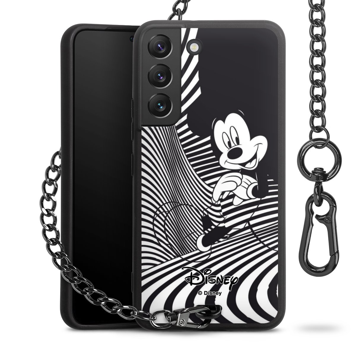 • Mattschwarze Handyhülle mit Metallkette