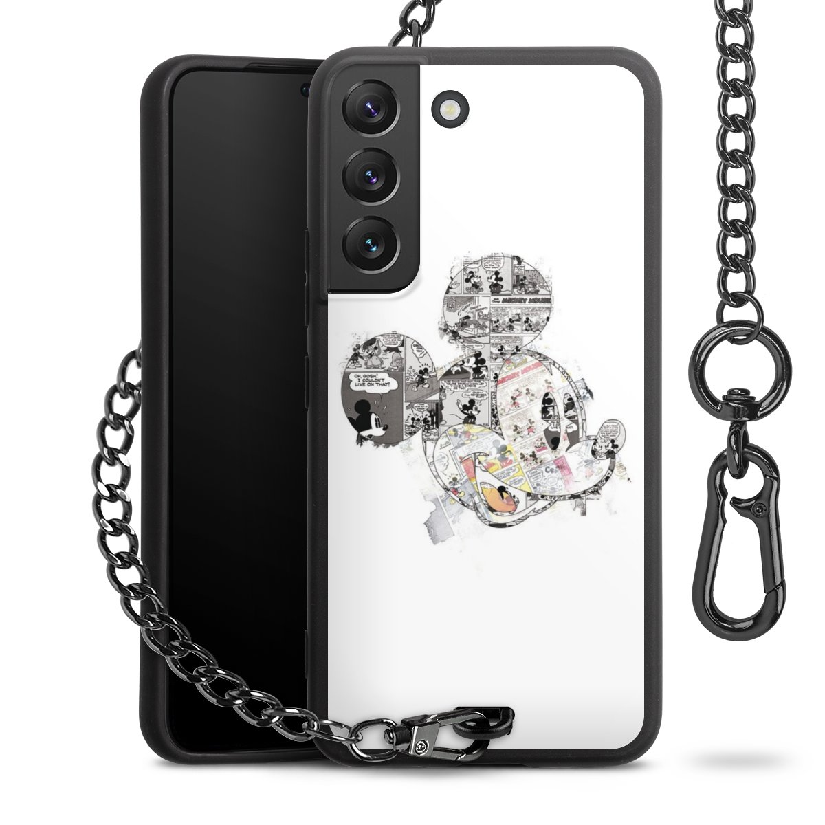 • Mattschwarze Handyhülle mit Metallkette