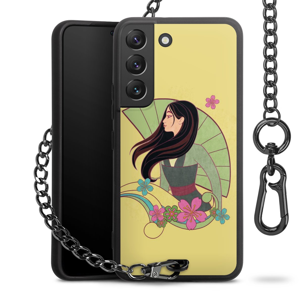 • Mattschwarze Handyhülle mit Metallkette
