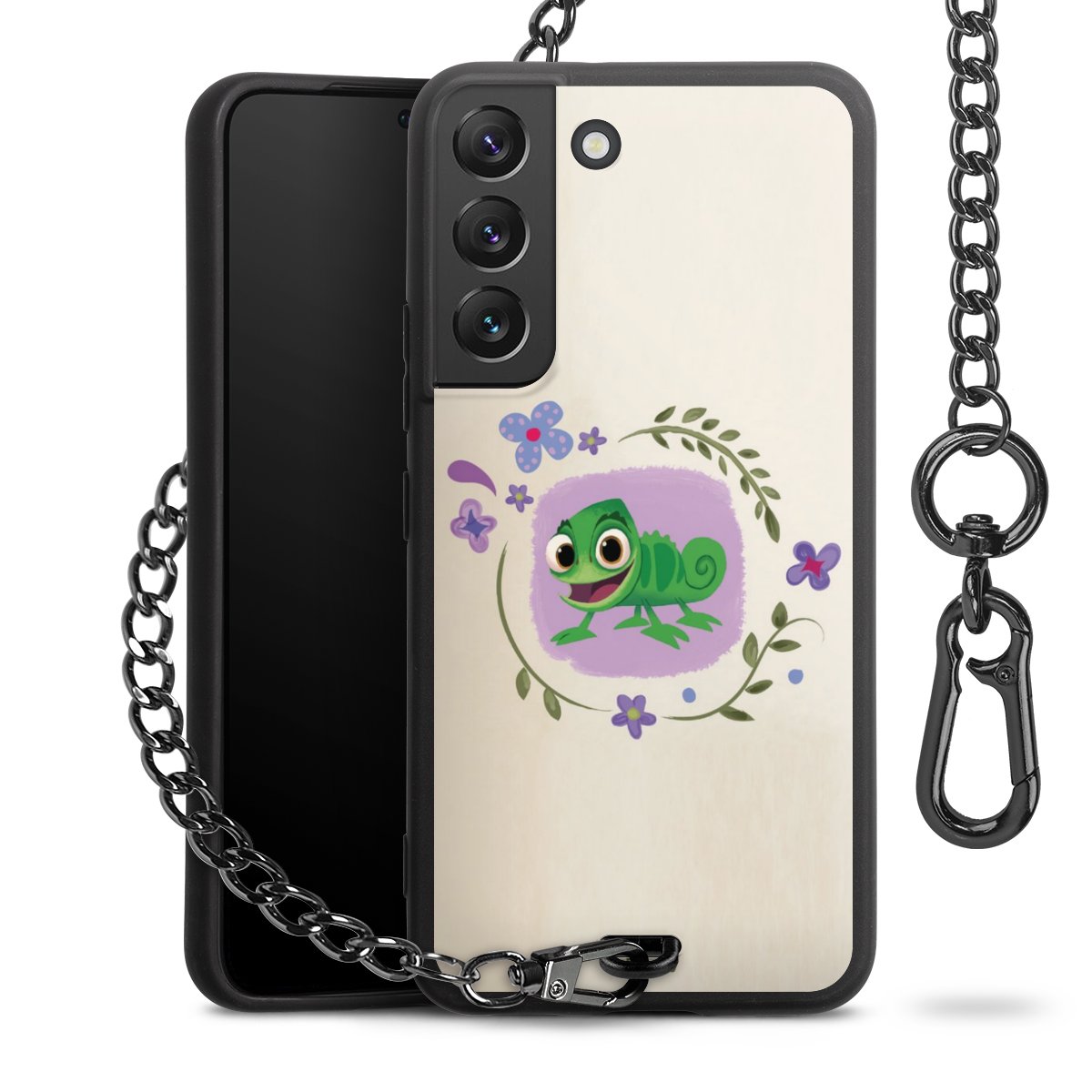 Die mattschwarze Silikon-Handyhülle besteht aus robustem TPU (thermoplastisches Polyurethan). Sie ist flexibel und schützt Dein Smartphone vor Stößen und Kratzern. Die Kette sowie der Karabinerhaken sind aus Metall in Gunmetal-Optik gefertigt. Für dieses Produkt kommen ausschließlich TÜV-geprüfte Materialien zum Einsatz.