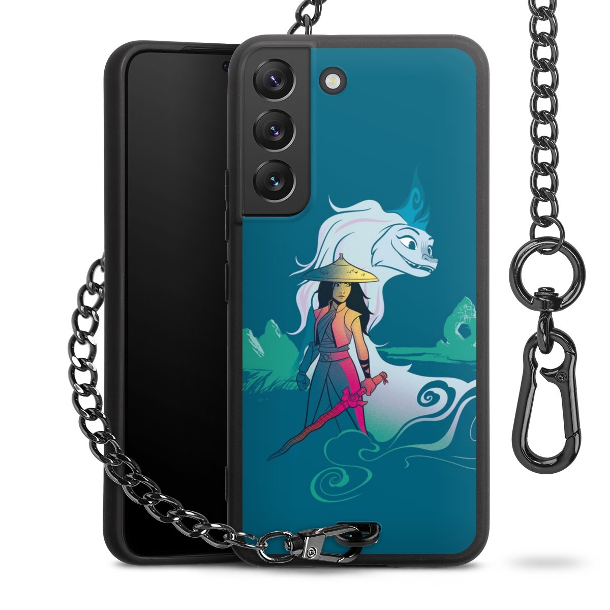• Mattschwarze Handyhülle mit Metallkette