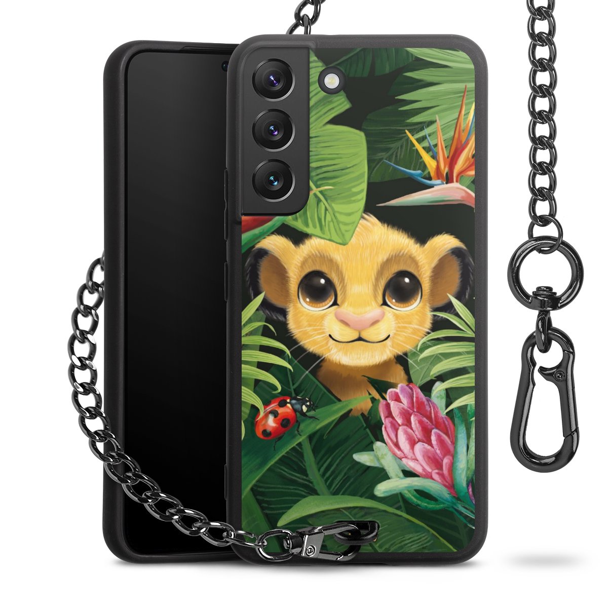 Die Handyhülle verfügt über eine mittig am unteren Rand platzierte Öse, an der die Metallkette stabil befestigt ist. Bestelle die Hülle einfach für Dein Smartphone-Modell, dann passt sie wie angegossen und Du brauchst sie bloß einmal anzudrücken. Handy in die Tasche, Karabiner an den Hosenbund – schon kann die Party starten.