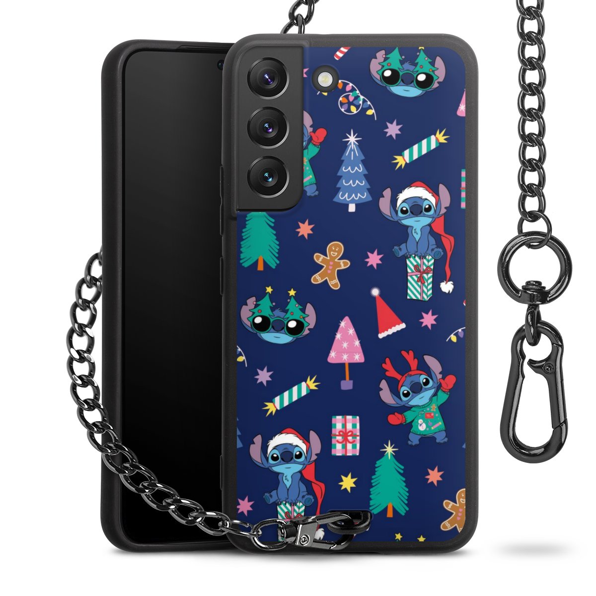 • Mattschwarze Handyhülle mit Metallkette