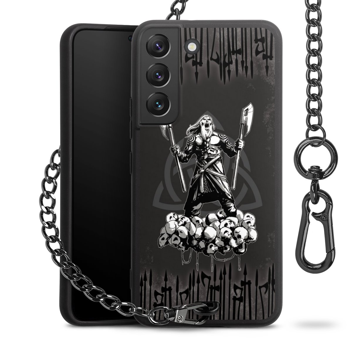 • Mattschwarze Handyhülle mit Metallkette