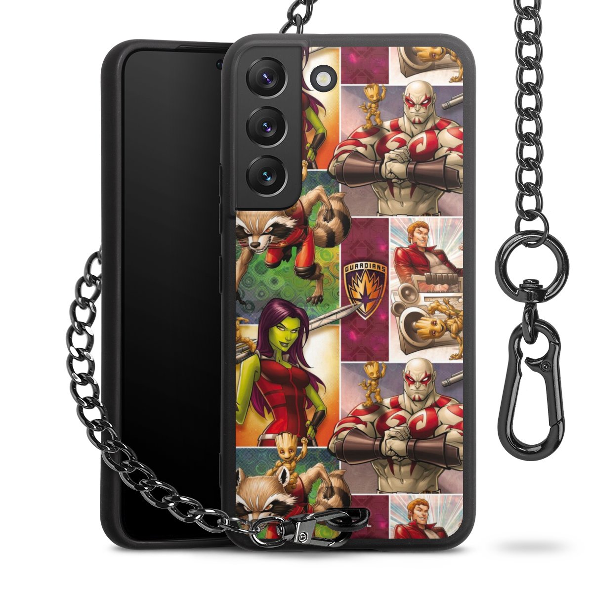 • Mattschwarze Handyhülle mit Metallkette