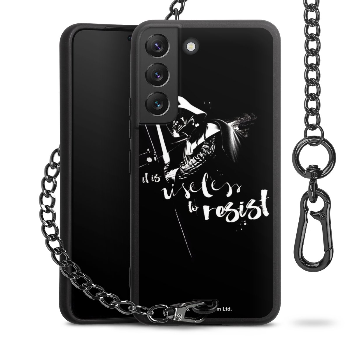 Die mattschwarze Silikon-Handyhülle besteht aus robustem TPU (thermoplastisches Polyurethan). Sie ist flexibel und schützt Dein Smartphone vor Stößen und Kratzern. Die Kette sowie der Karabinerhaken sind aus Metall in Gunmetal-Optik gefertigt. Für dieses Produkt kommen ausschließlich TÜV-geprüfte Materialien zum Einsatz.