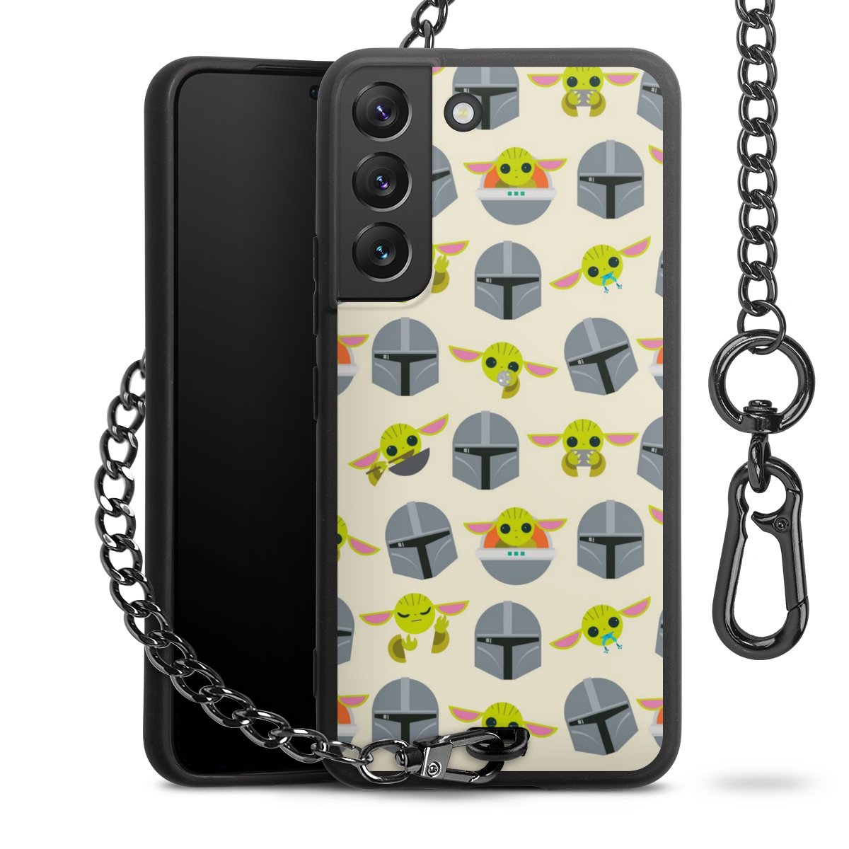 - Mattschwarze Handyhülle mit Metallkette