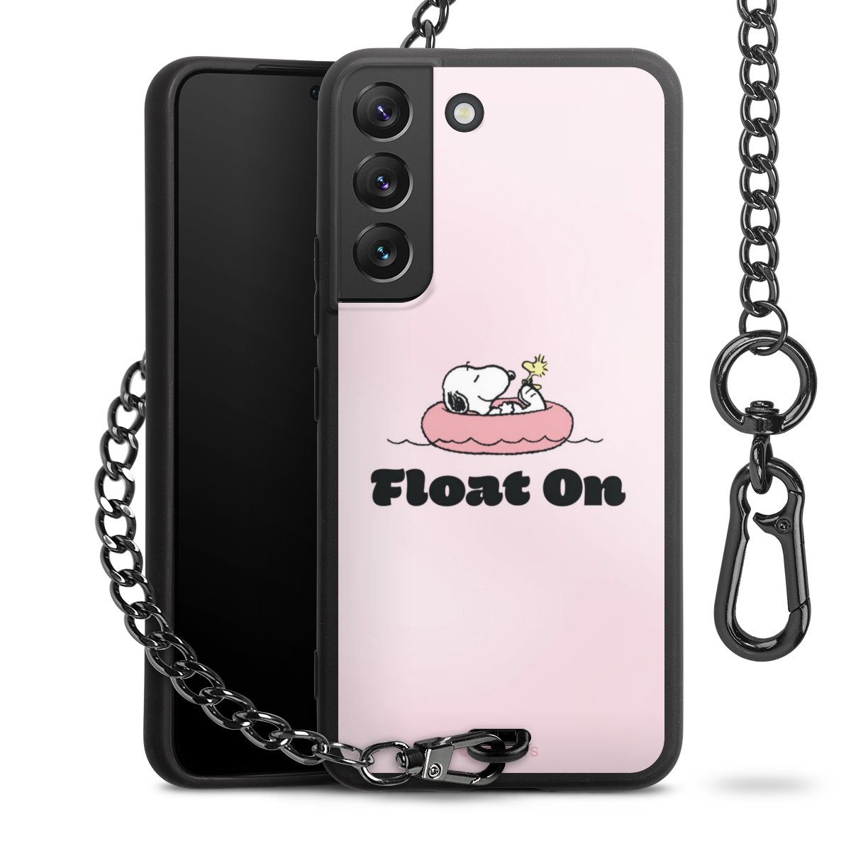 Die Handyhülle verfügt über eine mittig am unteren Rand platzierte Öse, an der die Metallkette stabil befestigt ist. Bestelle die Hülle einfach für Dein Smartphone-Modell, dann passt sie wie angegossen und Du brauchst sie bloß einmal anzudrücken. Handy in die Tasche, Karabiner an den Hosenbund – schon kann die Party starten.