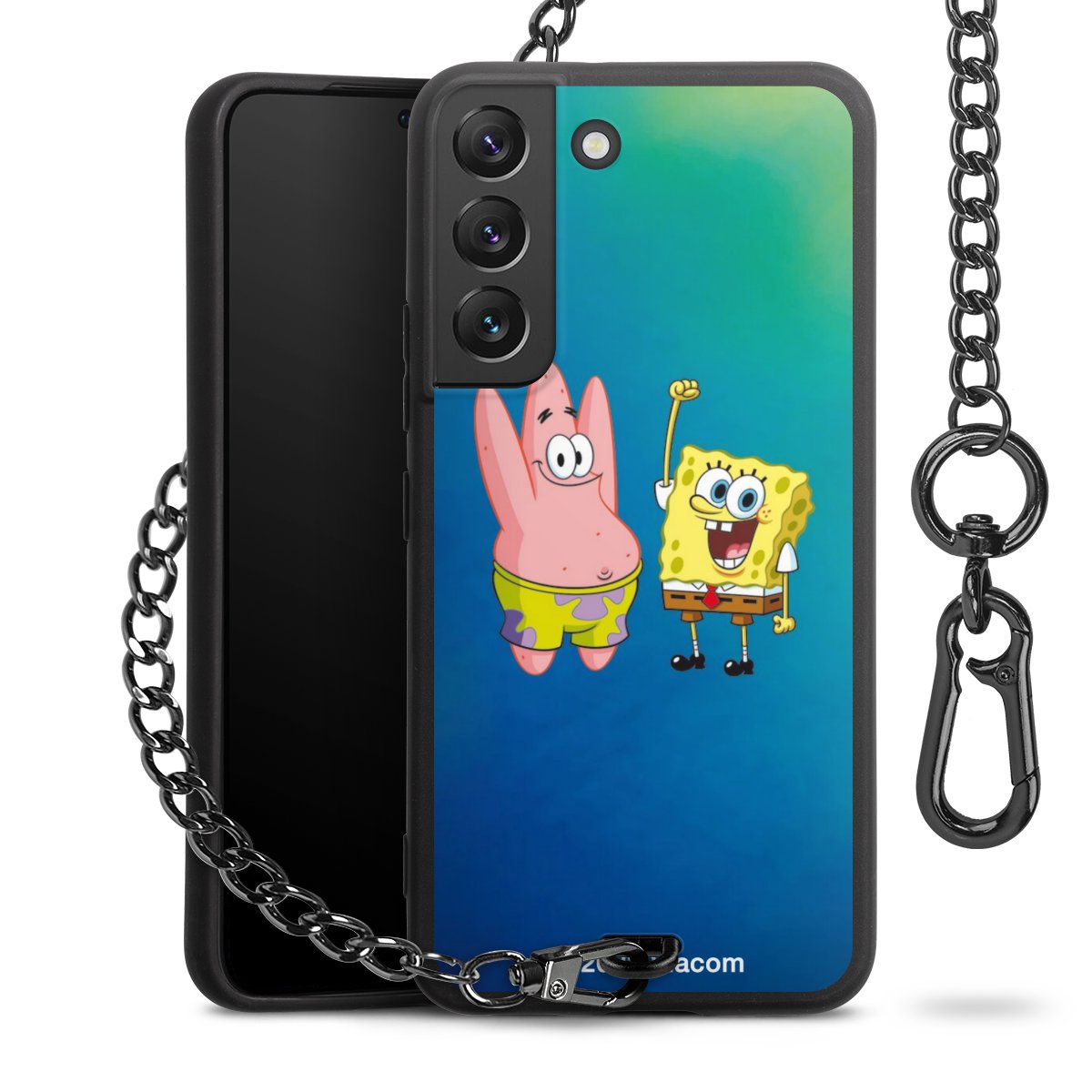 Die Handyhülle verfügt über eine mittig am unteren Rand platzierte Öse, an der die Metallkette stabil befestigt ist. Bestelle die Hülle einfach für Dein Smartphone-Modell, dann passt sie wie angegossen und Du brauchst sie bloß einmal anzudrücken. Handy in die Tasche, Karabiner an den Hosenbund – schon kann die Party starten.