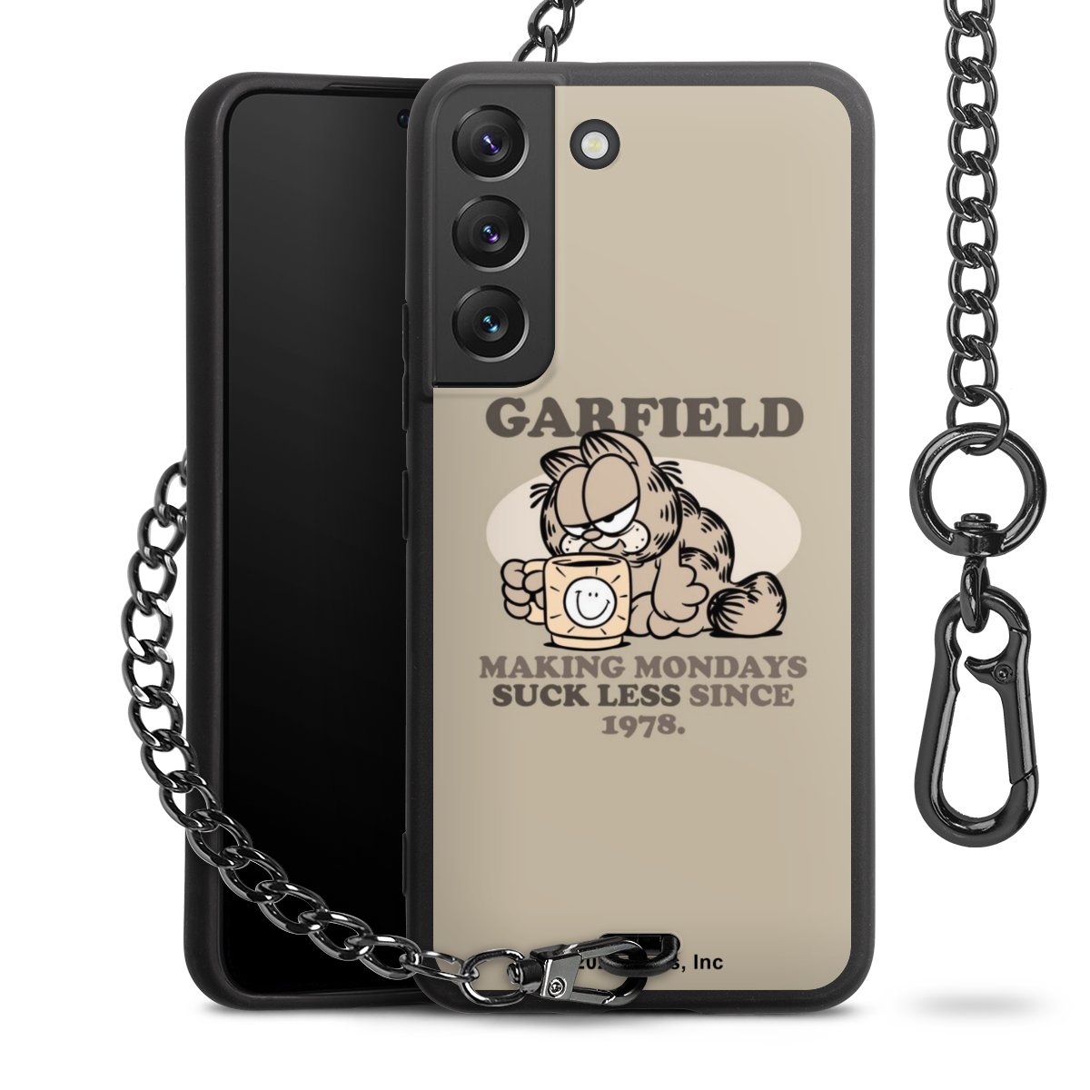 Die mattschwarze Silikon-Handyhülle besteht aus robustem TPU (thermoplastisches Polyurethan). Sie ist flexibel und schützt Dein Smartphone vor Stößen und Kratzern. Die Kette sowie der Karabinerhaken sind aus Metall in Gunmetal-Optik gefertigt. Für dieses Produkt kommen ausschließlich TÜV-geprüfte Materialien zum Einsatz.