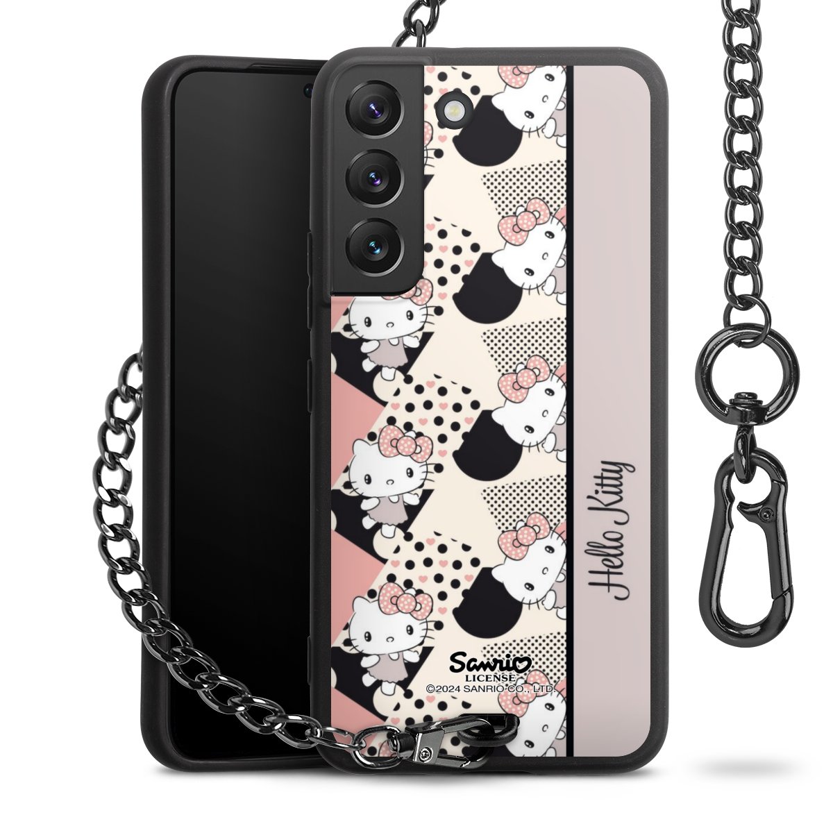 - Mattschwarze Handyhülle mit Metallkette