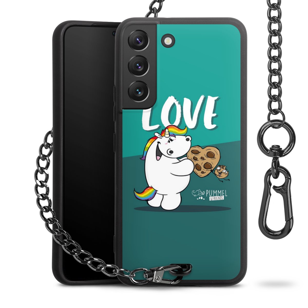 Die mattschwarze Silikon-Handyhülle besteht aus robustem TPU (thermoplastisches Polyurethan). Sie ist flexibel und schützt Dein Smartphone vor Stößen und Kratzern. Die Kette sowie der Karabinerhaken sind aus Metall in Gunmetal-Optik gefertigt. Für dieses Produkt kommen ausschließlich TÜV-geprüfte Materialien zum Einsatz.