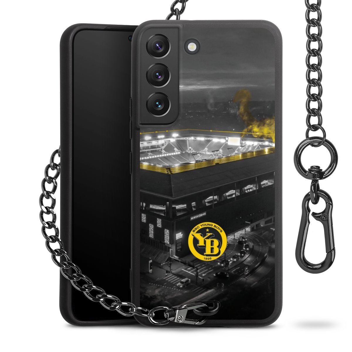 • Mattschwarze Handyhülle mit Metallkette