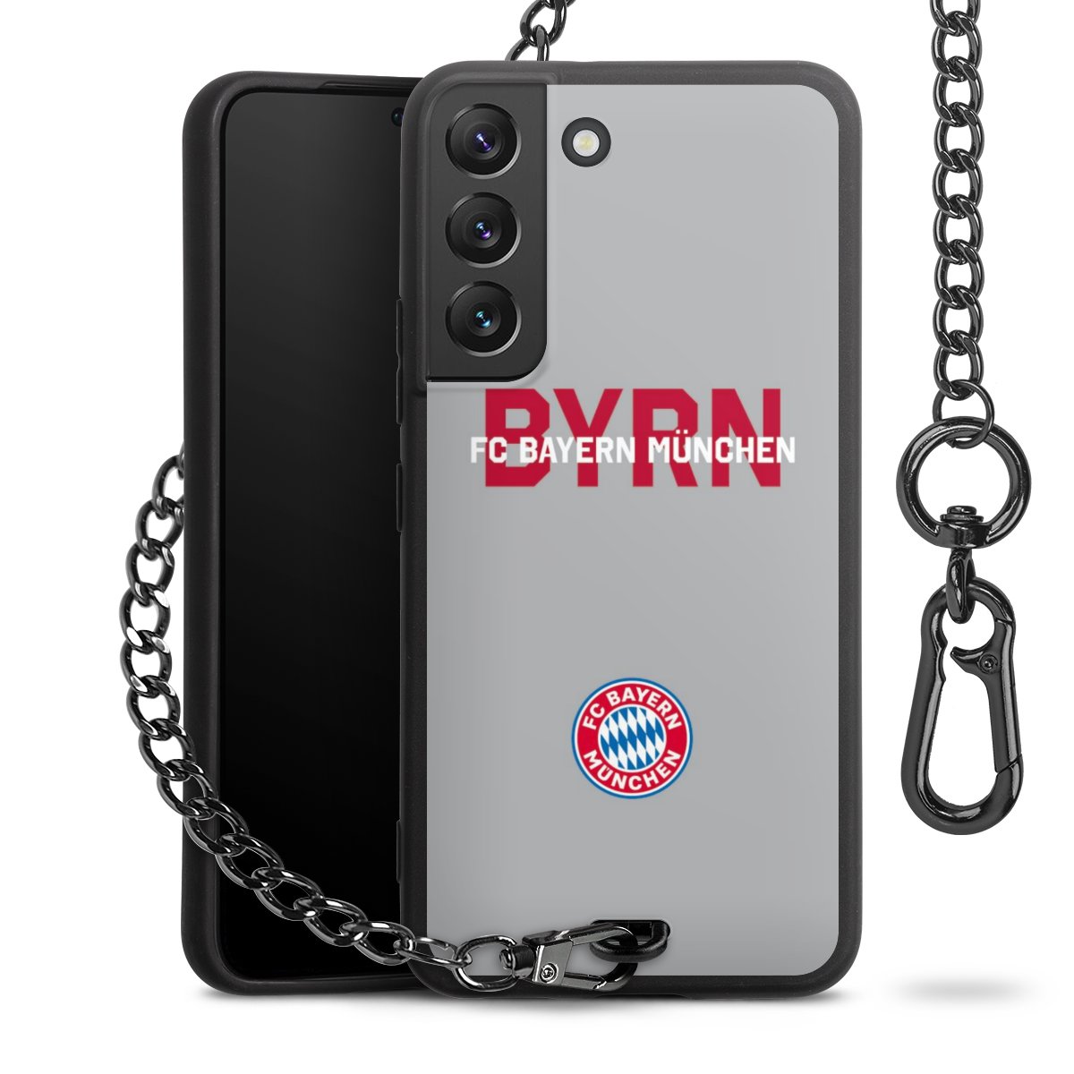 • Mattschwarze Handyhülle mit Metallkette