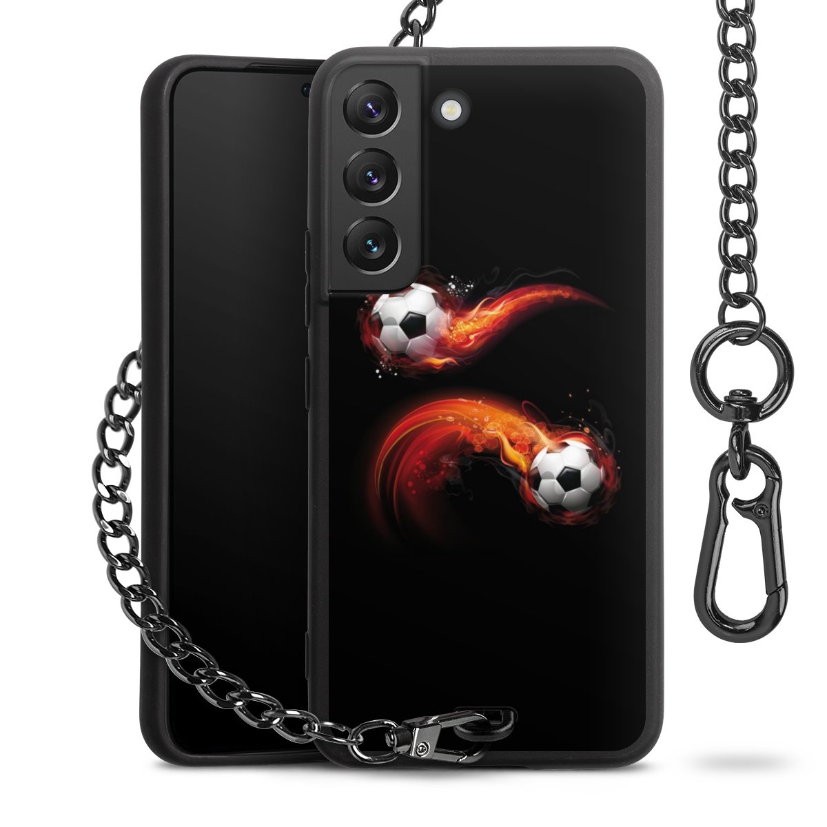 - Mattschwarze Handyhülle mit Metallkette