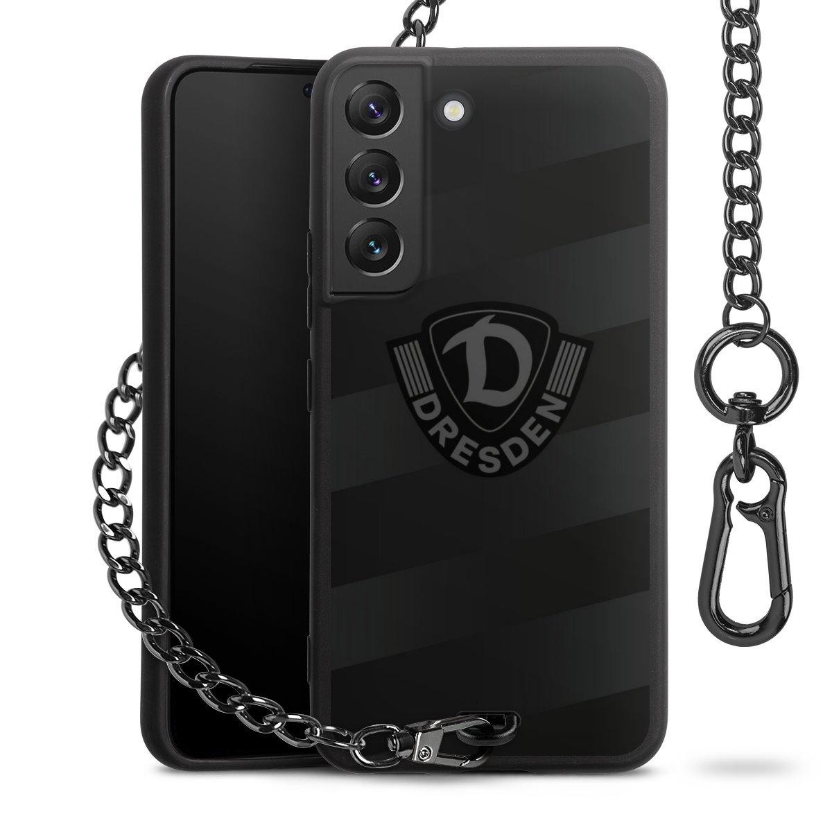 • Mattschwarze Handyhülle mit Metallkette