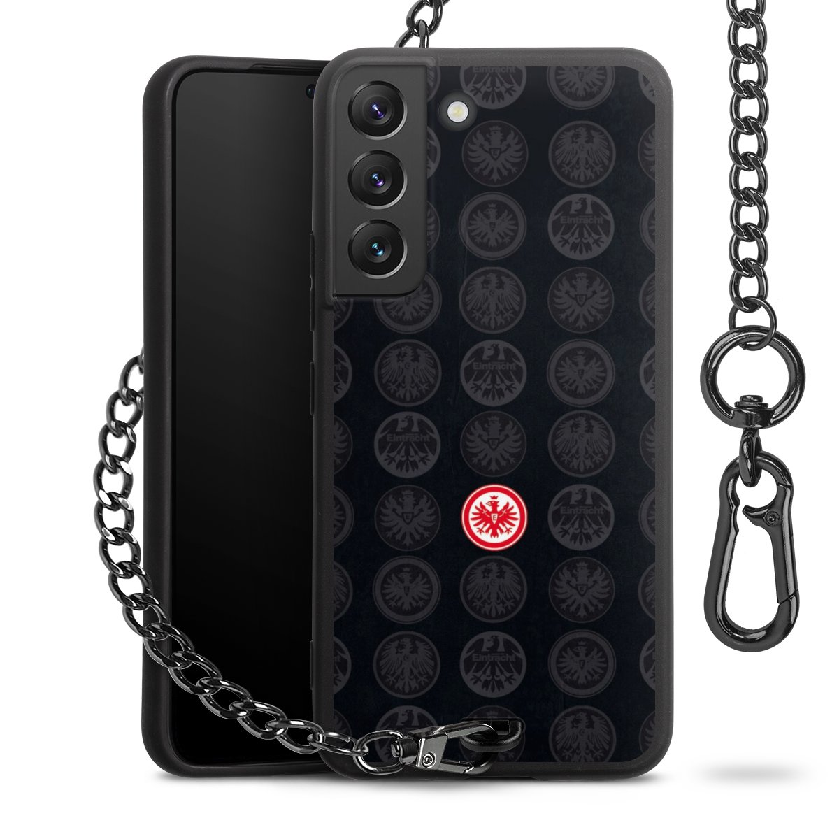 • Mattschwarze Handyhülle mit Metallkette