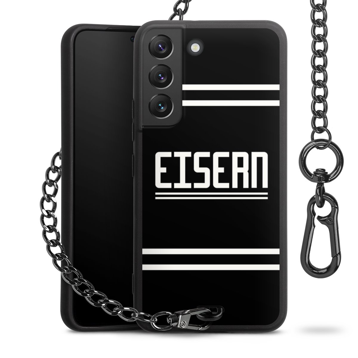 • Mattschwarze Handyhülle mit Metallkette
