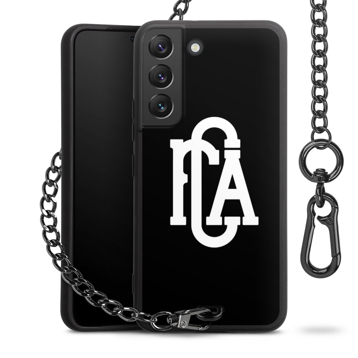 • Mattschwarze Handyhülle mit Metallkette
