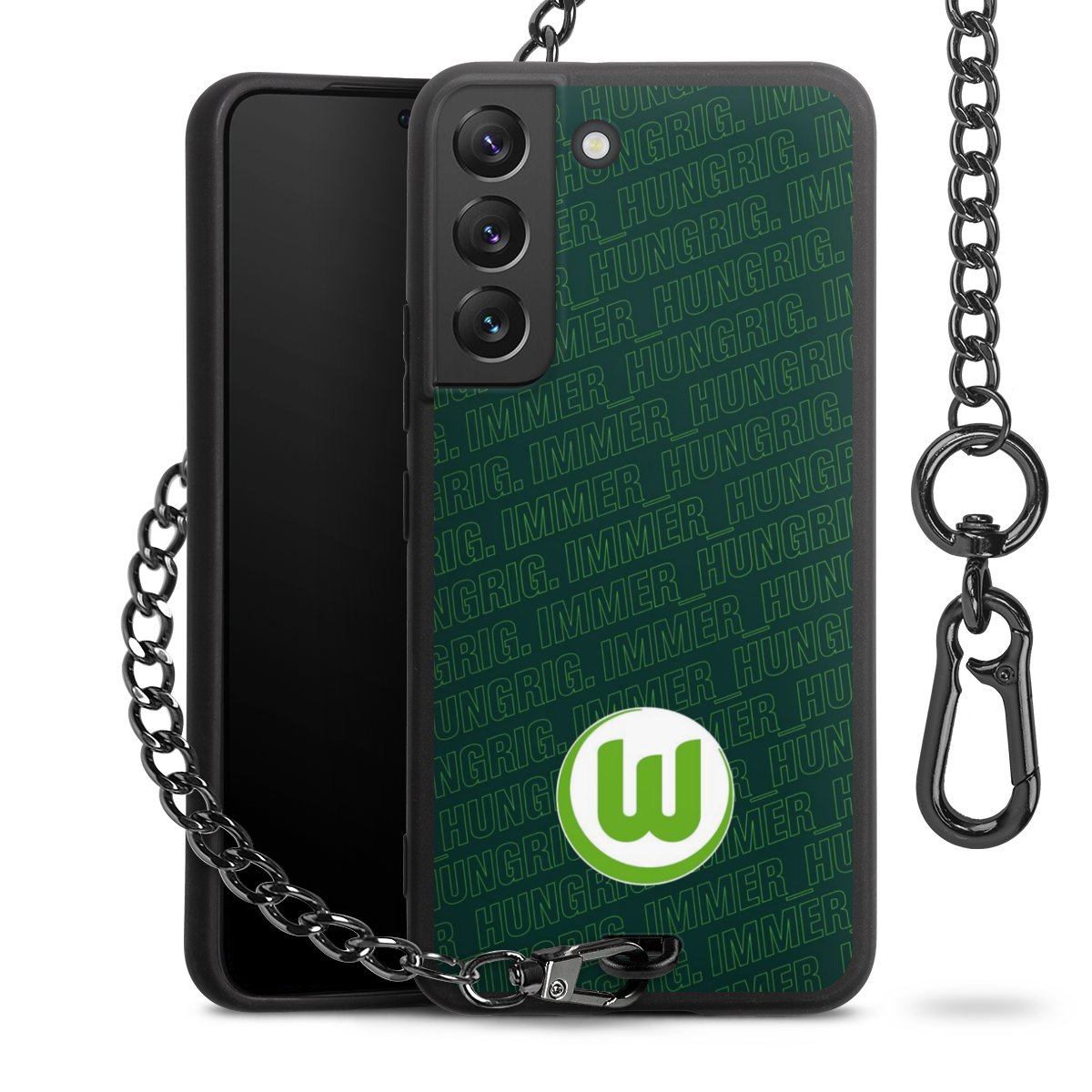 Die mattschwarze Silikon-Handyhülle besteht aus robustem TPU (thermoplastisches Polyurethan). Sie ist flexibel und schützt Dein Smartphone vor Stößen und Kratzern. Die Kette sowie der Karabinerhaken sind aus Metall in Gunmetal-Optik gefertigt. Für dieses Produkt kommen ausschließlich TÜV-geprüfte Materialien zum Einsatz.