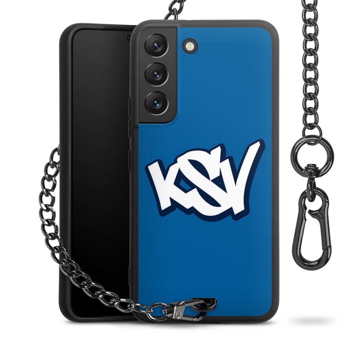 - Mattschwarze Handyhülle mit Metallkette