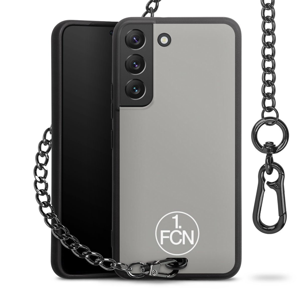 • Mattschwarze Handyhülle mit Metallkette