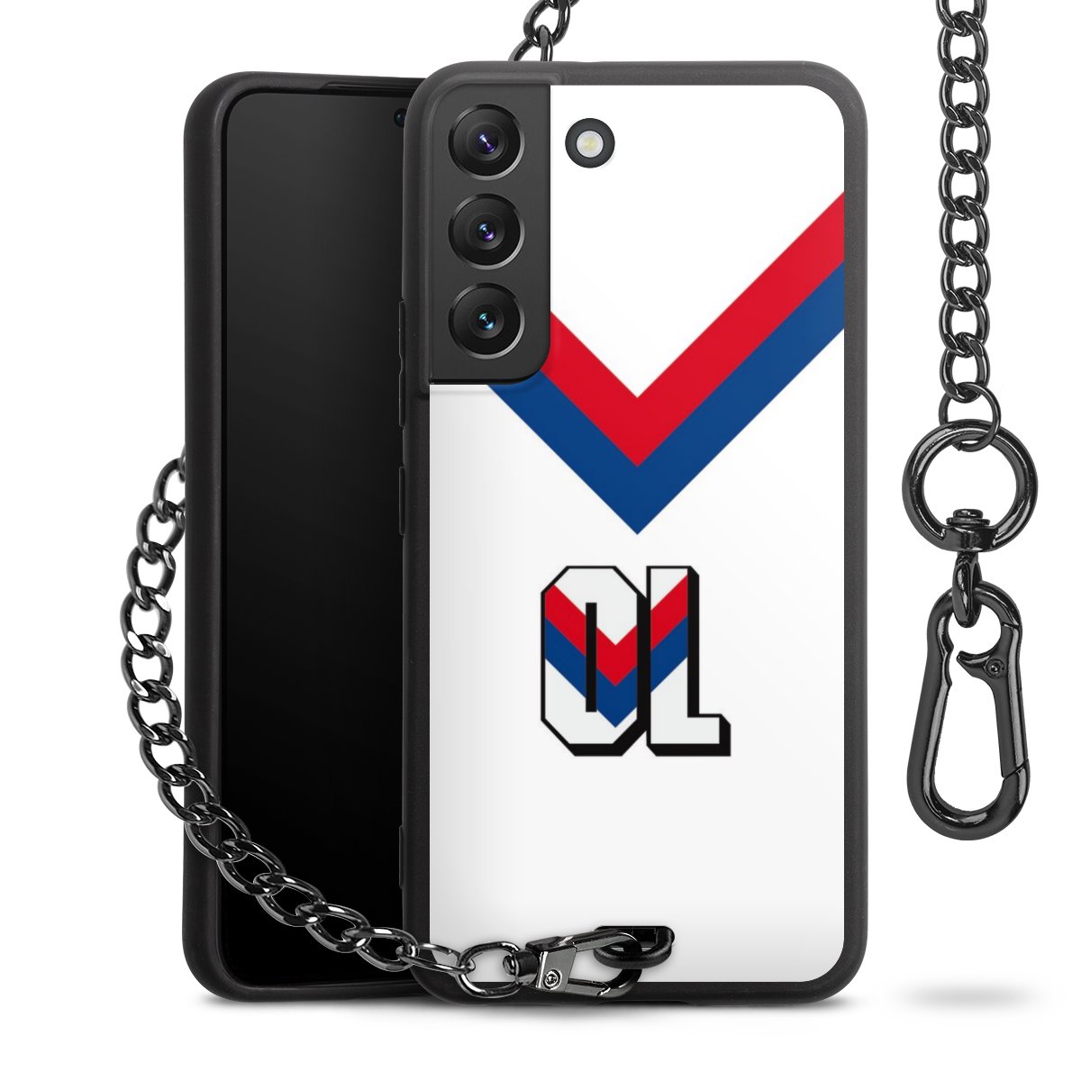Die Handyhülle verfügt über eine mittig am unteren Rand platzierte Öse, an der die Metallkette stabil befestigt ist. Bestelle die Hülle einfach für Dein Smartphone-Modell, dann passt sie wie angegossen und Du brauchst sie bloß einmal anzudrücken. Handy in die Tasche, Karabiner an den Hosenbund – schon kann die Party starten.