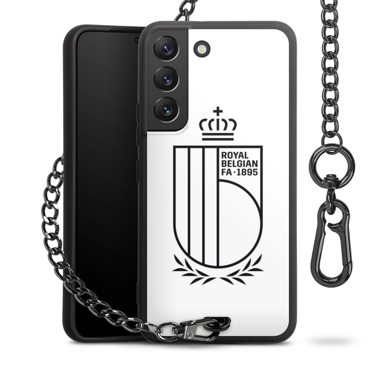 - Mattschwarze Handyhülle mit Metallkette