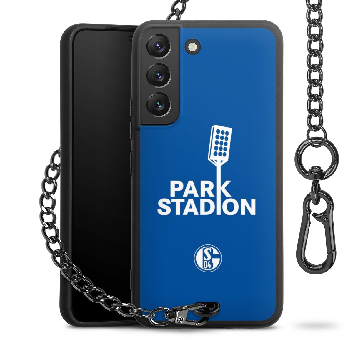 • Mattschwarze Handyhülle mit Metallkette