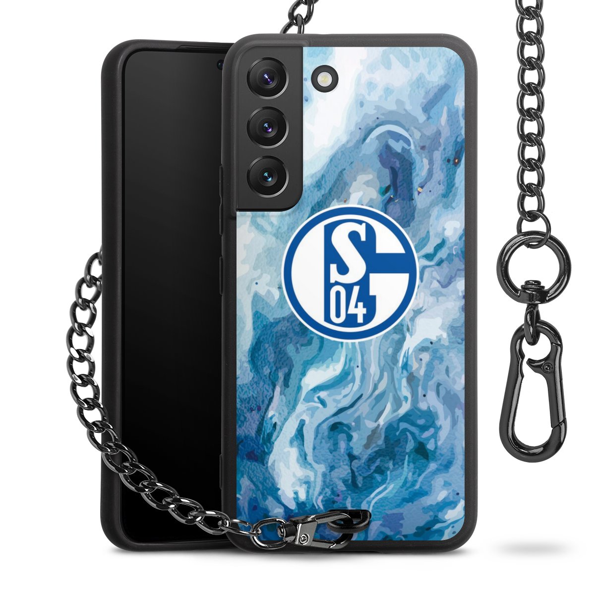 • Mattschwarze Handyhülle mit Metallkette