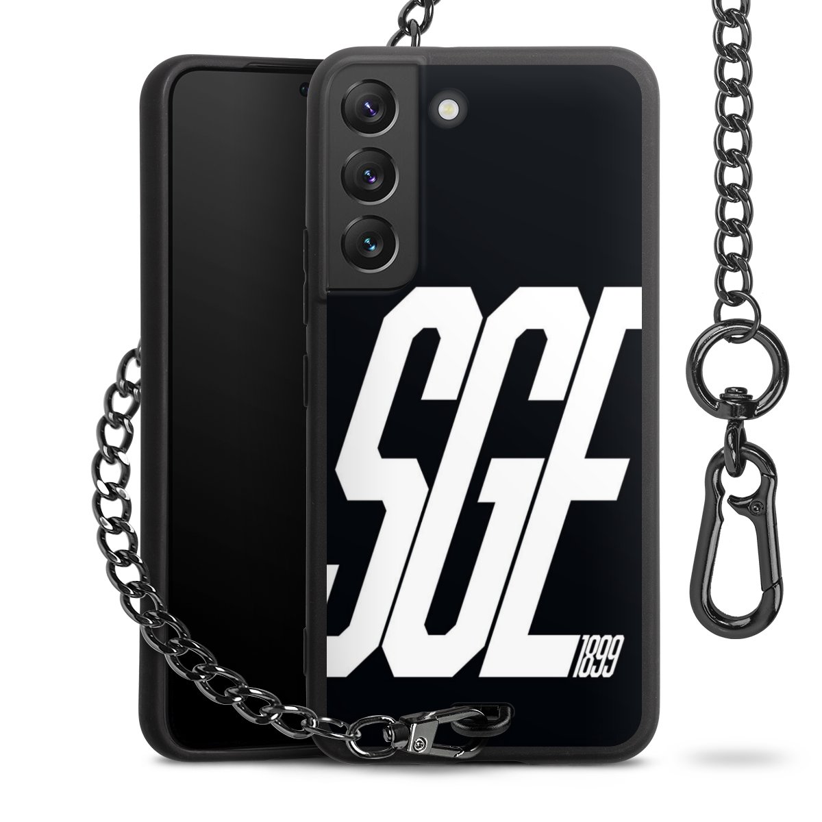 • Mattschwarze Handyhülle mit Metallkette