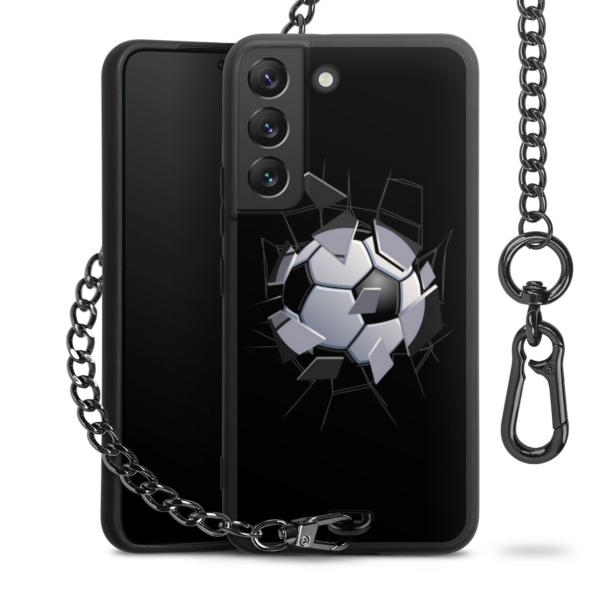 - Mattschwarze Handyhülle mit Metallkette