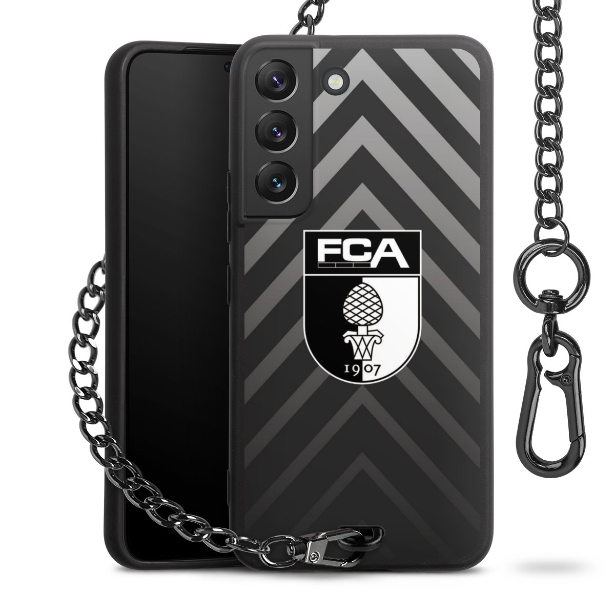 • Mattschwarze Handyhülle mit Metallkette