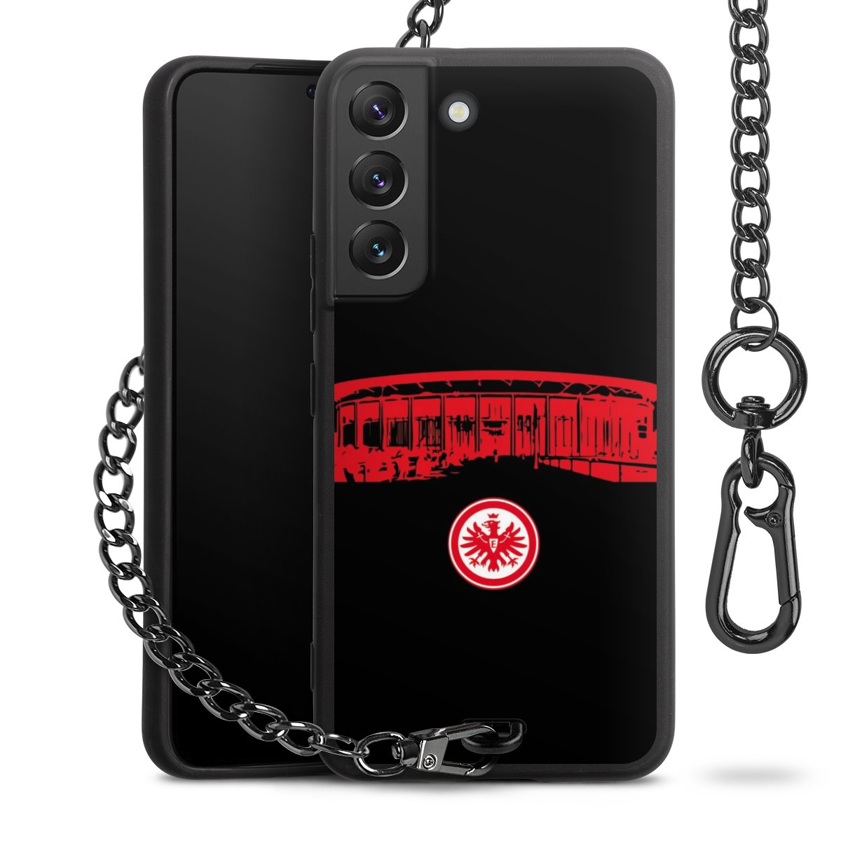 • Mattschwarze Handyhülle mit Metallkette