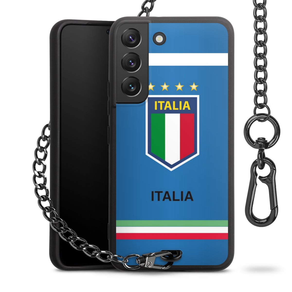 - Mattschwarze Handyhülle mit Metallkette