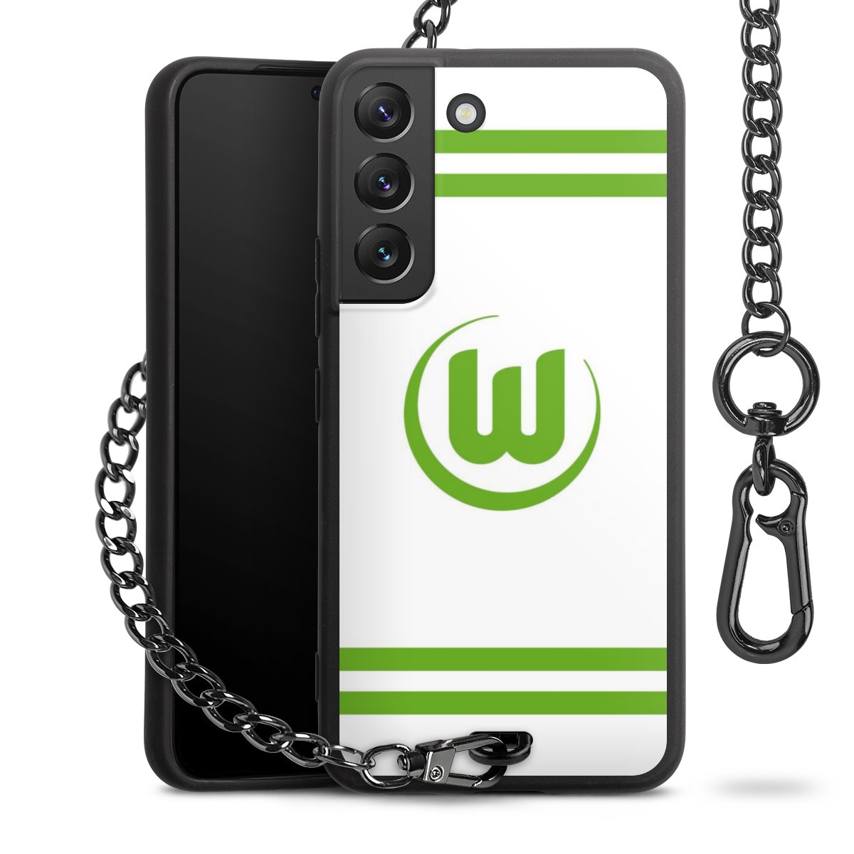 • Mattschwarze Handyhülle mit Metallkette