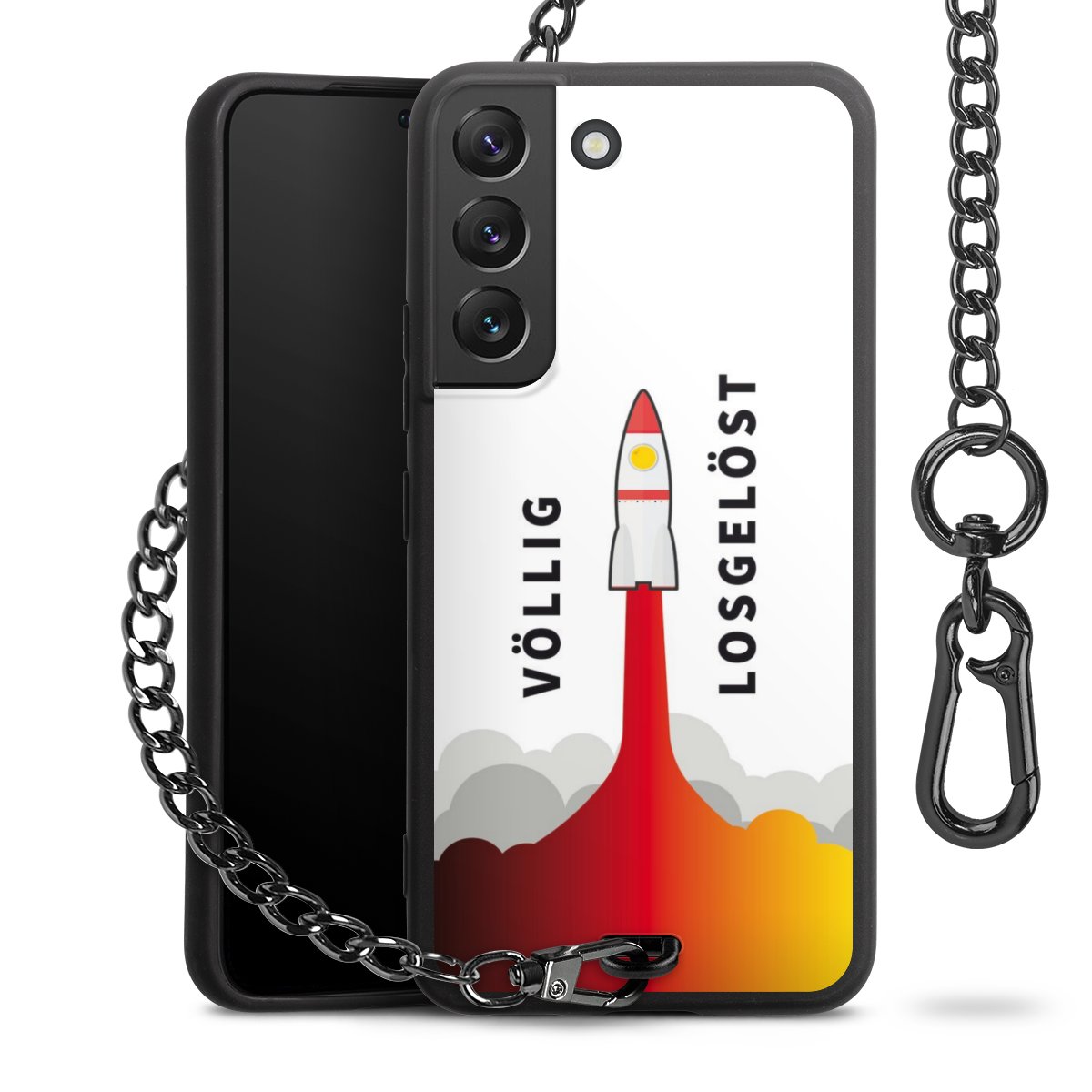Die mattschwarze Silikon-Handyhülle besteht aus robustem TPU (thermoplastisches Polyurethan). Sie ist flexibel und schützt Dein Smartphone vor Stößen und Kratzern. Die Kette sowie der Karabinerhaken sind aus Metall in Gunmetal-Optik gefertigt. Für dieses Produkt kommen ausschließlich TÜV-geprüfte Materialien zum Einsatz.