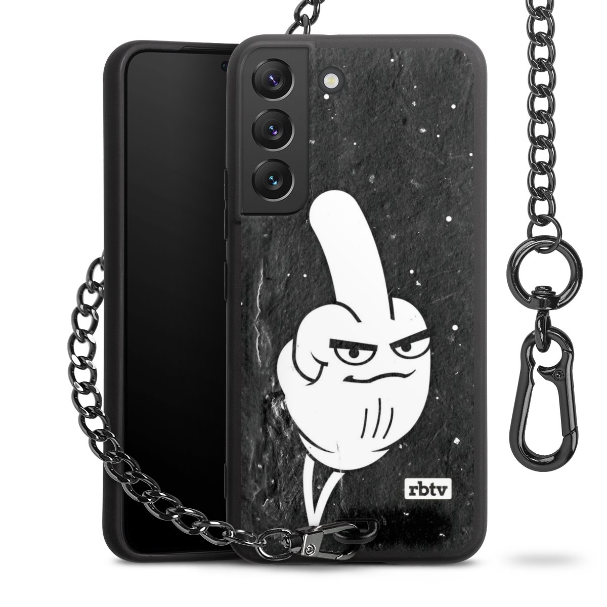 • Mattschwarze Handyhülle mit Metallkette