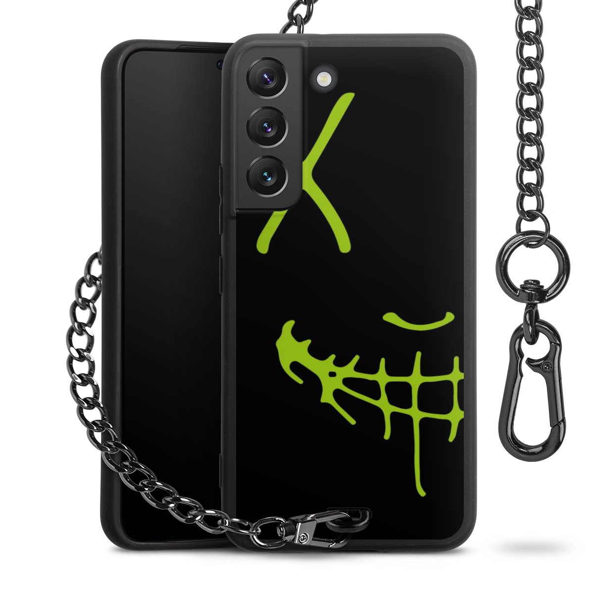• Mattschwarze Handyhülle mit Metallkette