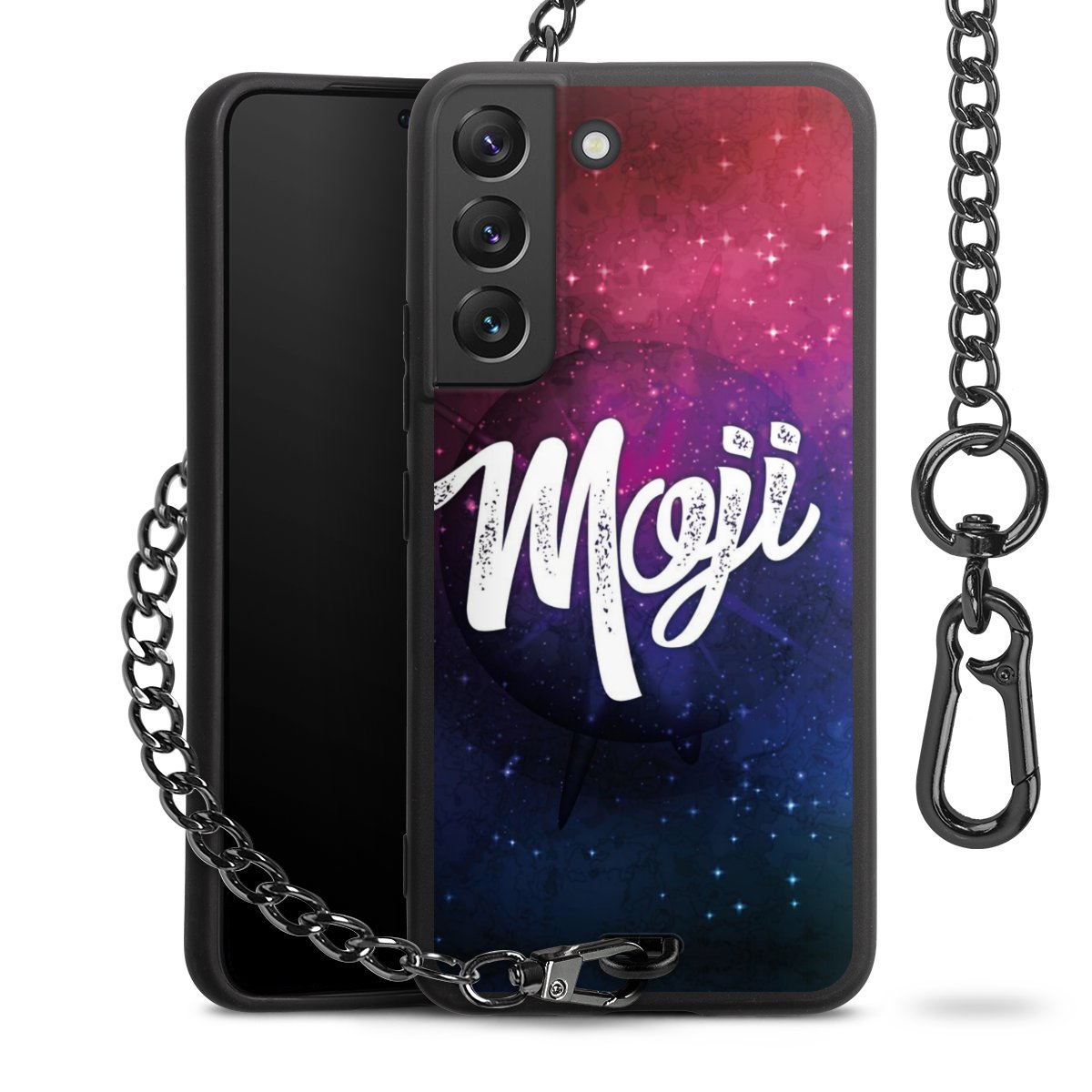 • Mattschwarze Handyhülle mit Metallkette